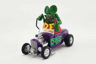 - Serialized Plate, Plumbed And Wired Engine, Poseable Steering, Rubber Tires, Steerable Wheels, Blown Hemi Engine, Detailed Interior, Exterior, Opening Doors And Trunk, Flame Job With Rat Fink Graphics, Rat Fink Figure Included