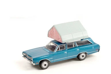 69 Plymouth Satellite Station Wagon Rooftop Sleeper Tent 38010B/48 1/64 scale Diecast Model Toy Car