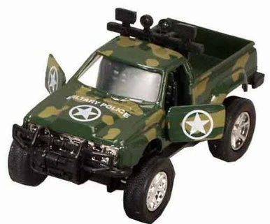 They’ll be eating your dust with this limitless military vehicle. This Military Police Topless Jeep GP is a diecast model replica. It comes in green camo and features pullback motor action with openable doors. It’s a terrific choice for any military vehicle collection, and a real gem for fervent Jeep fans!